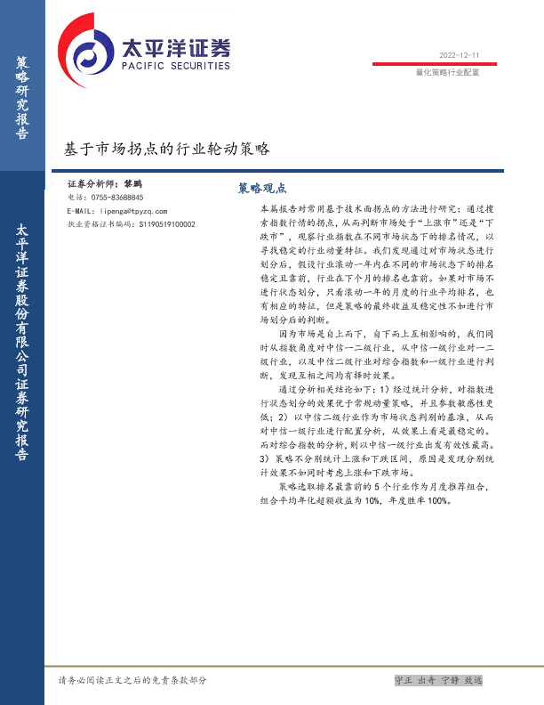 【太平洋证券】【20221211】基于市场拐点的行业轮动策略-16页