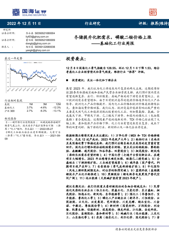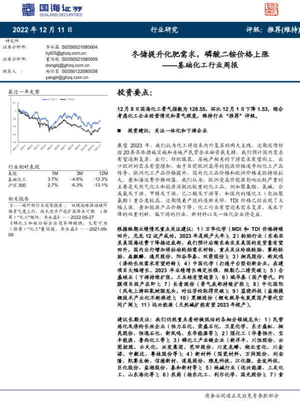 【国海证券】【20221211】基础化工行业周报:冬储提升化肥需求,磷酸二铵价格上涨-57页