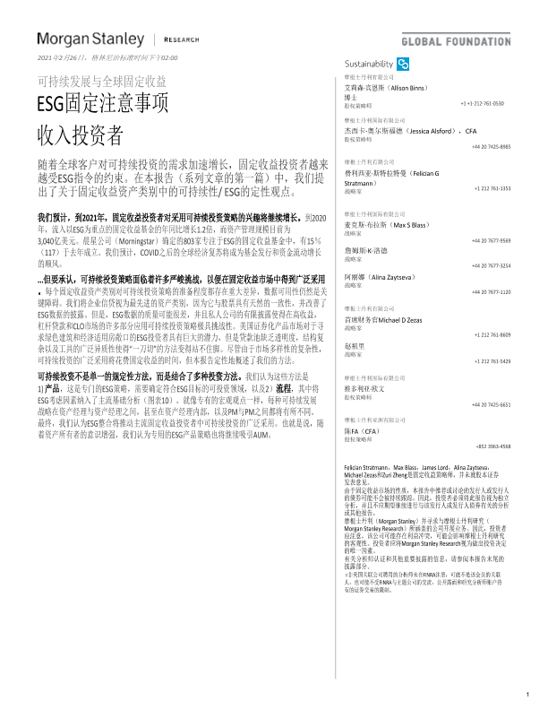 【Morgan Stanley】【2021】全球投资策略固定收益投资者的ESG考虑因素-23页
