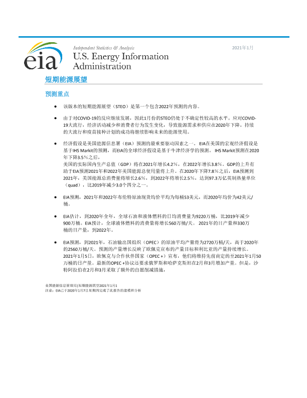 【美国能源资料协会(EIA)】【202101】2021年美国短期能源展望报告-57页