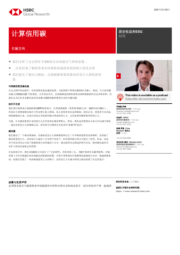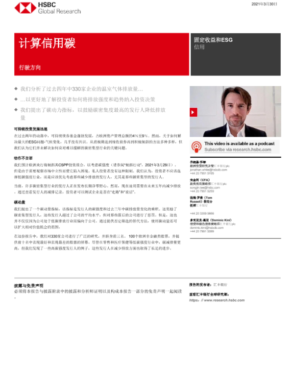 【HSBC】【20210330】全球投资策略在信贷中计算碳:前行的方向-29页