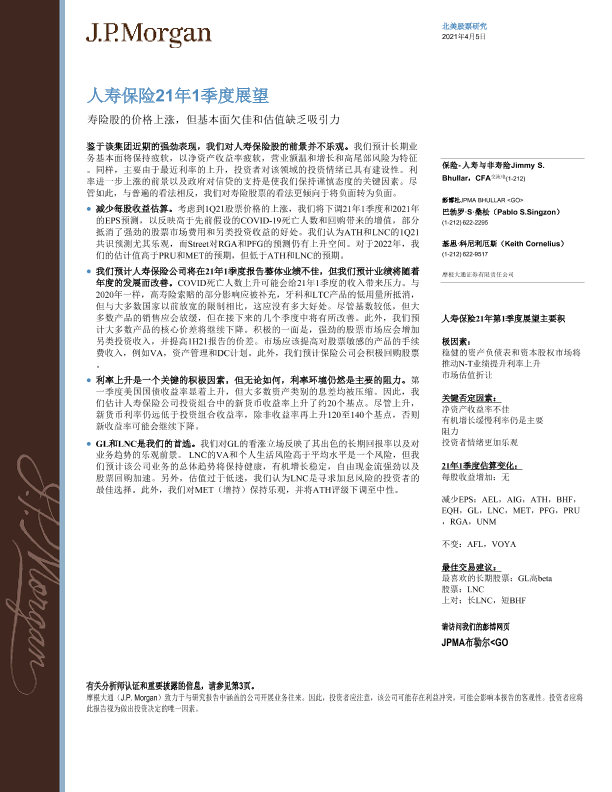 【J.P. Morgan】【20210405】J.P. 摩根-美股保险行业-寿险行业2021年Q1展望-118页