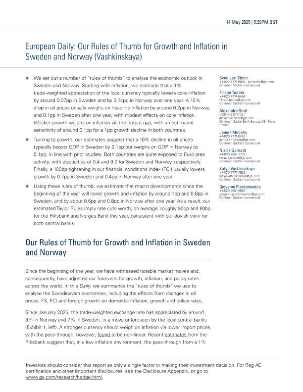 【Goldman Sachs】【20250514】欧洲日报我们对瑞典和挪威增长与通胀的经验法则-8页