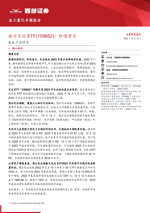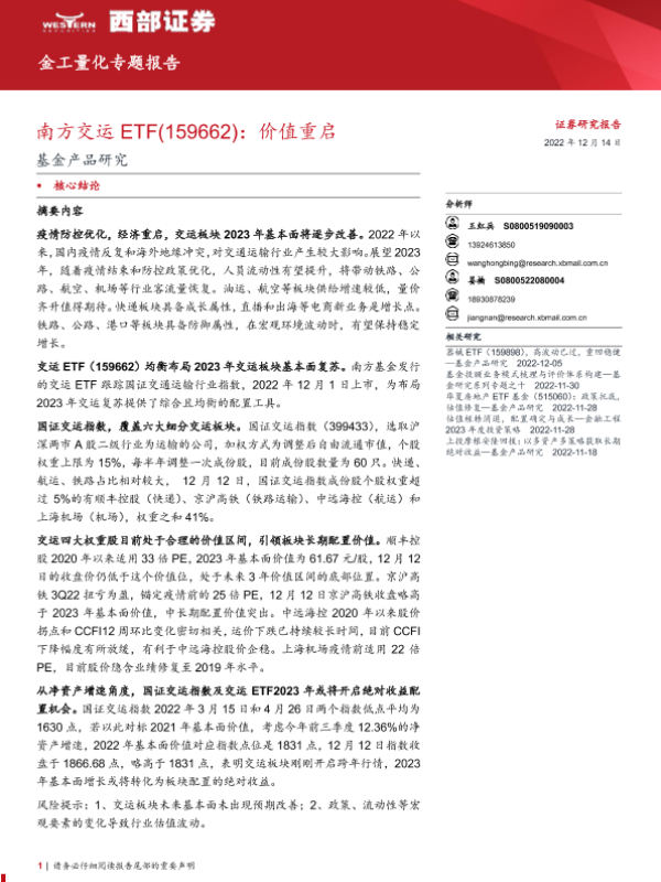 【西部证券】【20221214】基金产品研究:南方交运ETF(159662),价值重启-26页