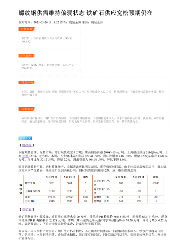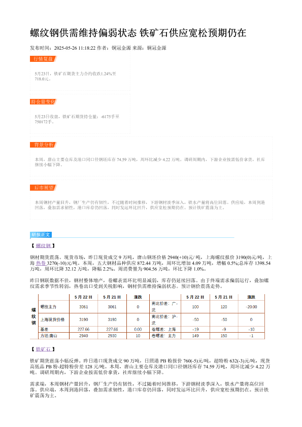 【铜冠金源期货】【20250526】螺纹钢供需维持偏弱状态 铁矿石供应宽松预期仍在-2页