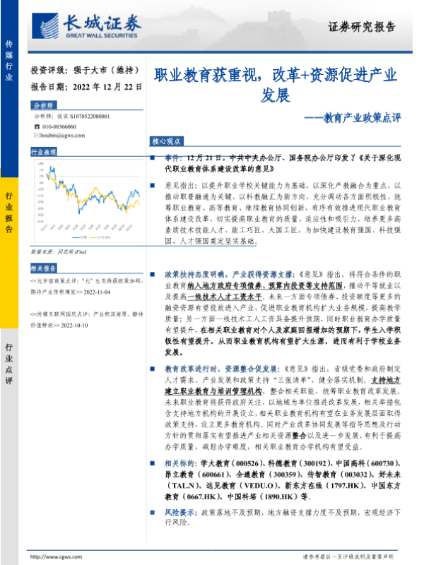 【长城证券】【20221222】传媒行业教育产业政策点评:职业教育获重视,改革+资源促进产业发展-2页