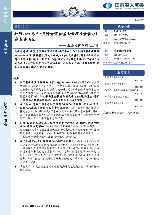 【国泰君安证券】【20221210】被随机性愚弄:投资者评价基金经理投资能力时存在的误区-23页