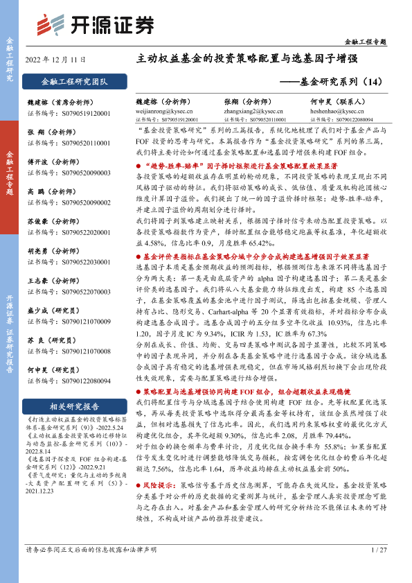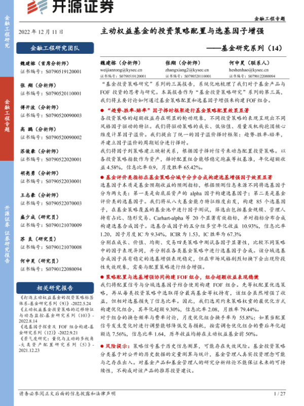 【开源证券】【20221211】主动权益基金的投资策略配置与选基因子增强-27页