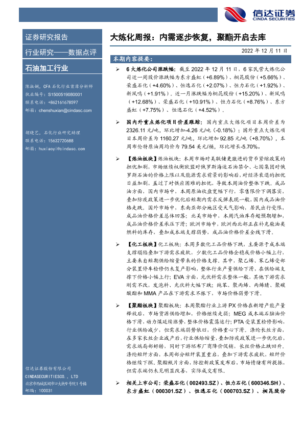 【信达证券】【20221211】大炼化周报:内需逐步恢复,聚酯开启去库-21页