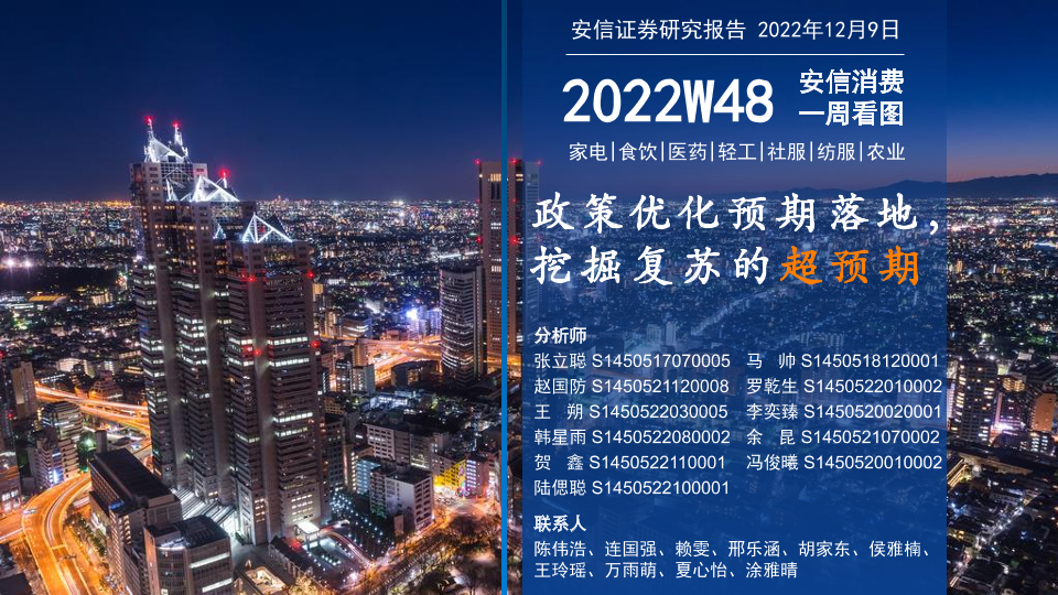 【安信证券】【20221209】安信消费一周看图2022W48:政策优化预期落地,挖掘复苏的超预期-71页