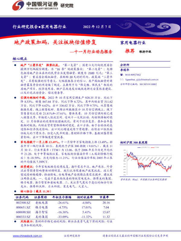 【银河证券】【20221207】家用电器行业十一月行业动态报告:地产政策加码,关注板块估值修复-24页