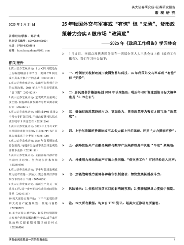 【英大证券】【20250331】2025年《政府工作报告》学习体会-14页