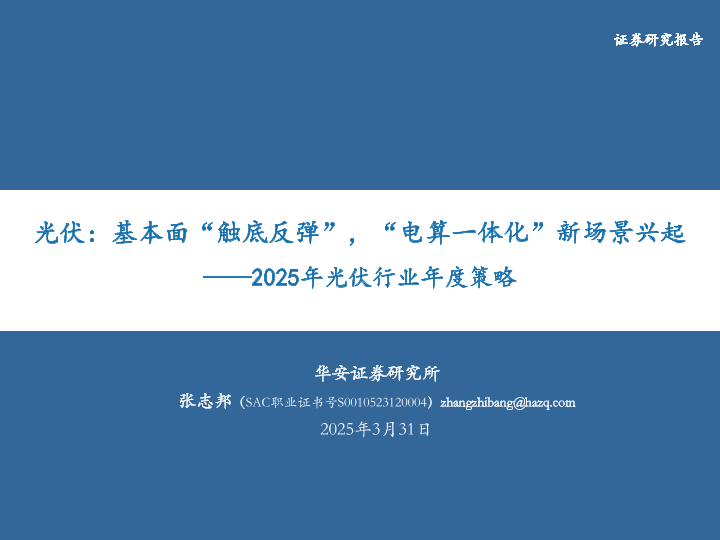 【华安证券】【20250331】2025年光伏行业年度策略:基本面“触底反弹”,“电算一体化”新场景兴起-36页