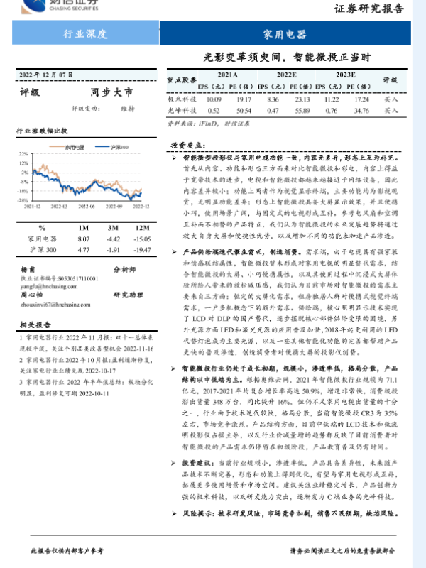 家用电器 市场分析 技术创新 投资建议 智能微投