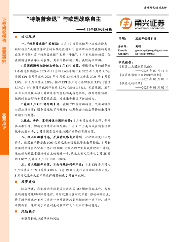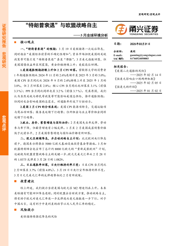 【甬兴证券】【20250331】3月全球环境分析:“特朗普衰退”与欧盟战略自主-14页
