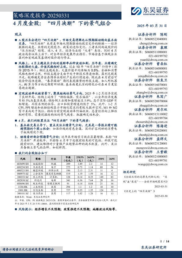 【东吴证券】【20250331】4月度金股:“四月决断”下的景气组合-14页