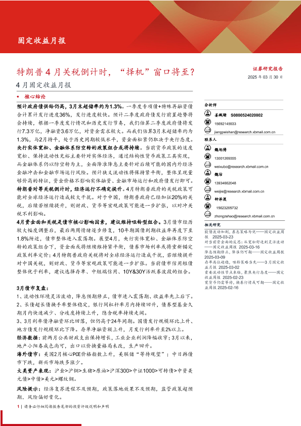 【西部证券】【20250330】4月固定收益月报:特朗普4月关税倒计时,“择机”窗口将至?-23页