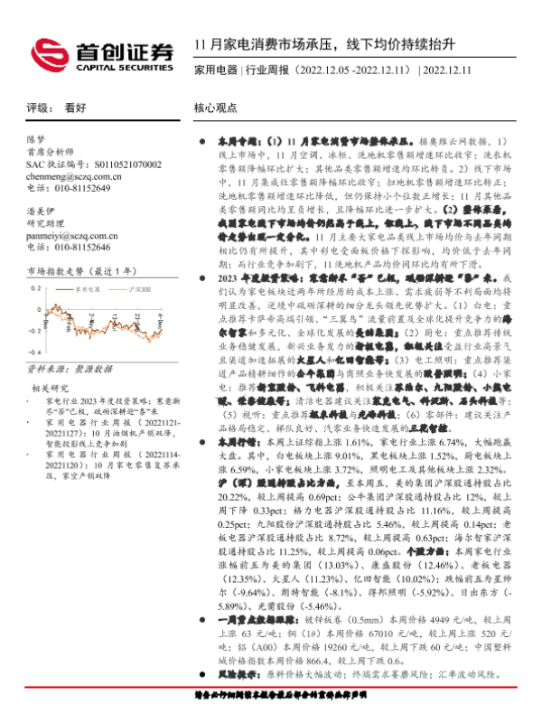 【首创证券】【20221211】家用电器行业周报:11月家电消费市场承压,线下均价持续抬升-17页