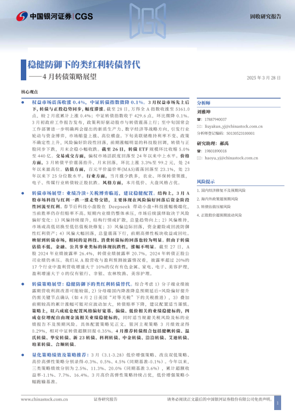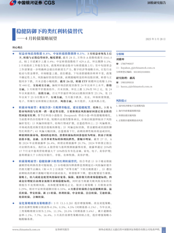 【银河证券】【20250328】4月转债策略展望:稳健防御下的类红利转债替代-20页