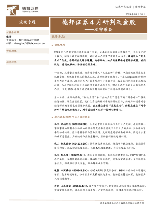 【德邦证券】【20250331】4月研判及金股:攻守兼备-17页