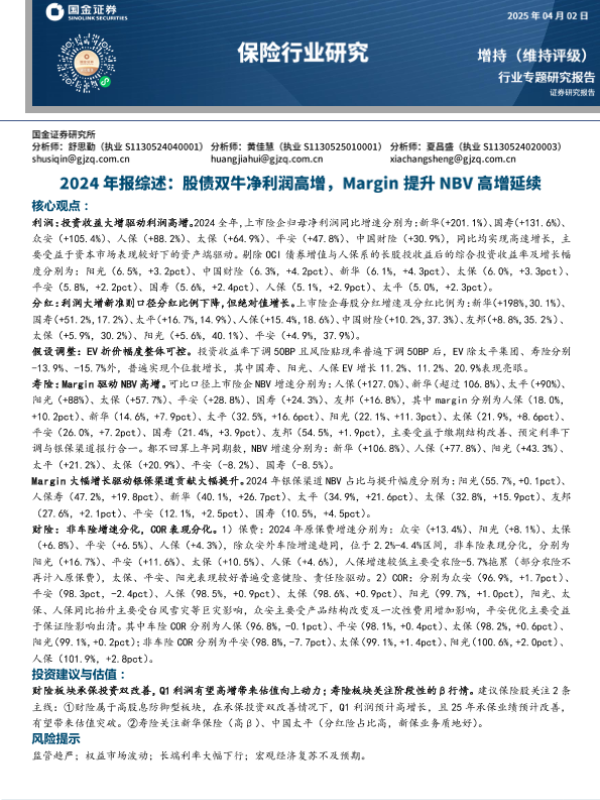 【国金证券】【202402】保险行业2024年报综述-21页