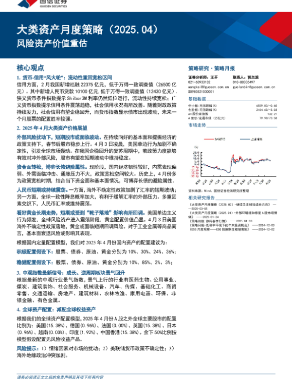 大类资产配置 市场预测 货币政策 风险资产 黄金配置