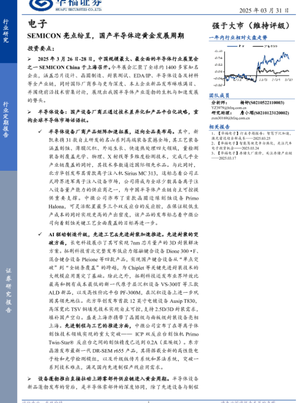 【华福证券】【20250331】电子行业定期报告:SEMICON亮点纷呈,国产半导体迎黄金发展周期-15页