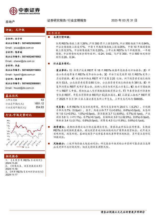 【中泰证券】【20250331】房地产行业:各REITs密集披露年报及分红公告-16页