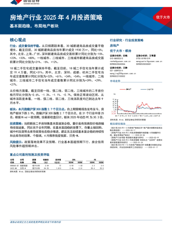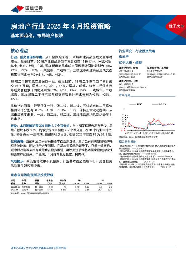 【国信证券】【202504】房地产行业2025年4月投资策略:基本面趋稳,布局地产板块-10页