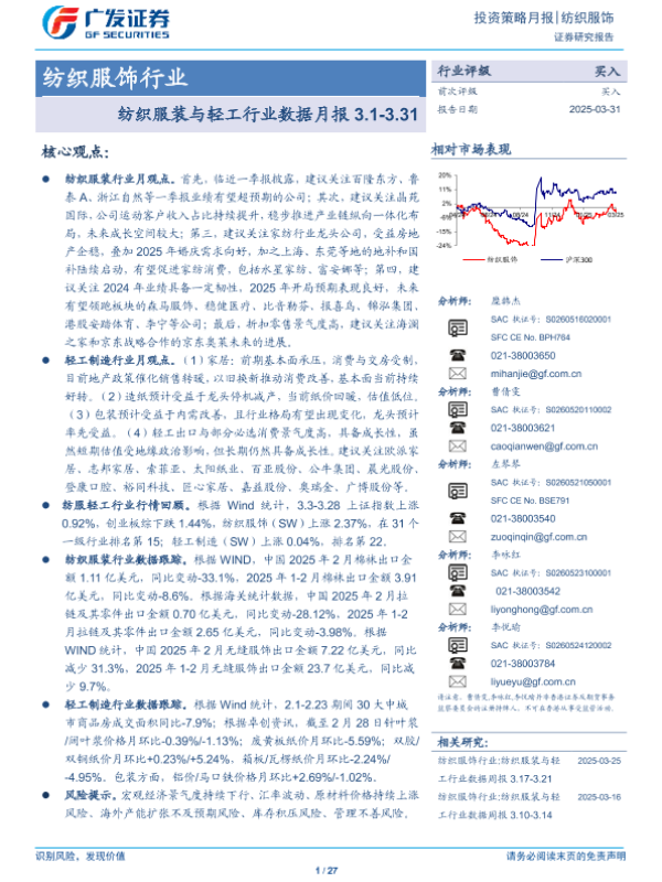 【广发证券】【20250331】纺织服装与轻工行业数据月报 3.1-3.31-27页