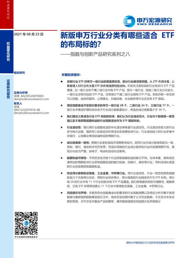 【申万宏源】【20210823】指数与创新产品研究系列之八:新版申万行业分类有哪些适合ETF的布局标的?-22页