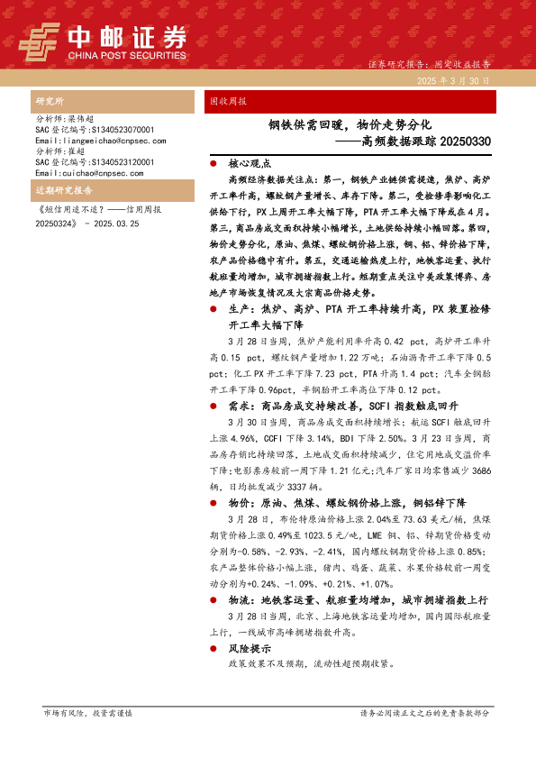 【中邮证券】【20250330】高频数据跟踪:钢铁供需回暖,物价走势分化-13页