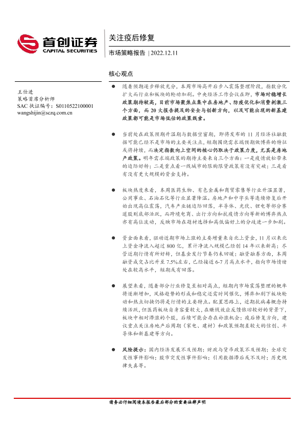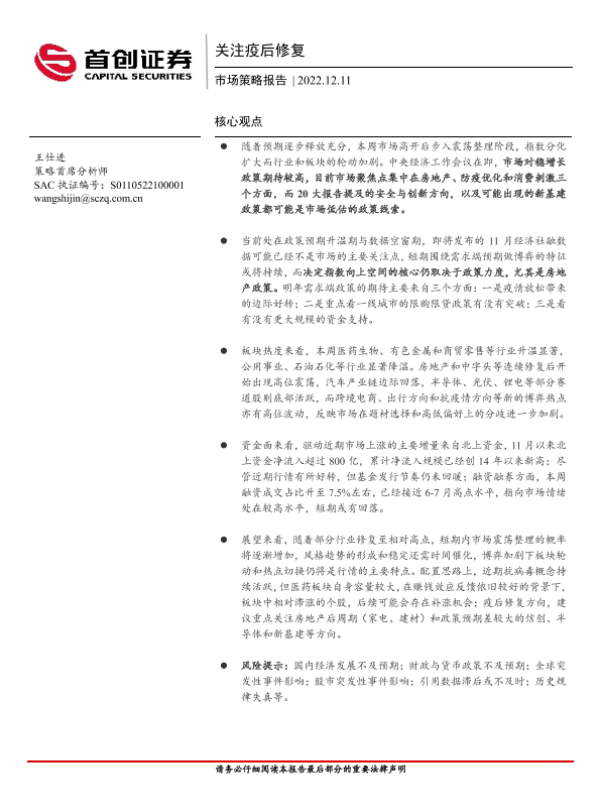 【首创证券】【20221211】市场策略报告:关注疫后修复-16页