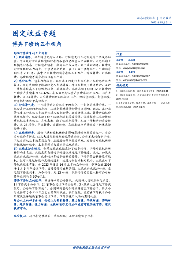 下修 固定收益 投资策略 行业分析 可转债