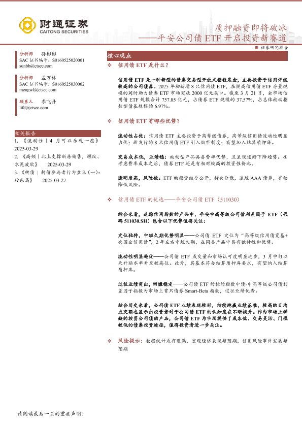 【财通证券】【20250330】质押融资即将破冰——平安公司债ETF开启投资新赛道-14页