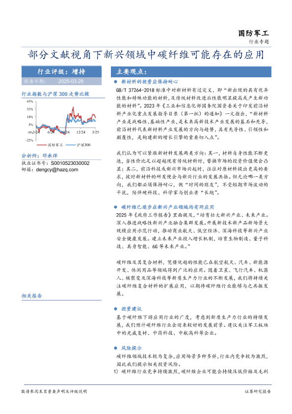 国防军工 应用拓展 投资分析 新材料 碳纤维