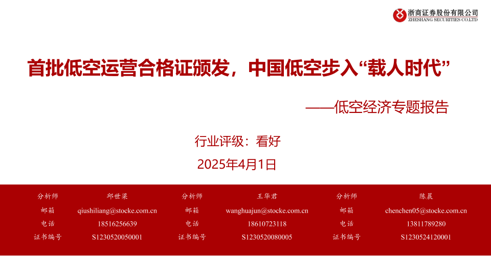 【浙商证券】【20250401】国防军工行业低空经济专题报告:首批低空运营合格证颁发,中国低空步入“载人时代”-15页