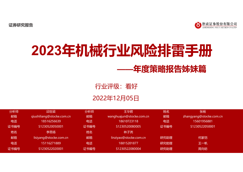 【浙商证券】【20221205】2023年机械行业风险排雷手册-40页