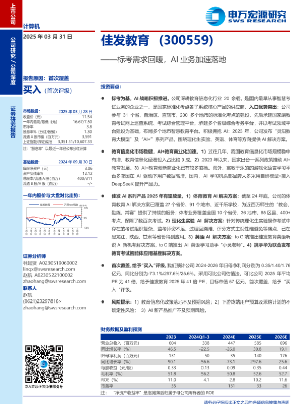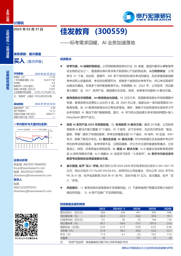 【申万宏源】【20250331】佳发教育(300559)标考需求回暖,AI业务加速落地-20页