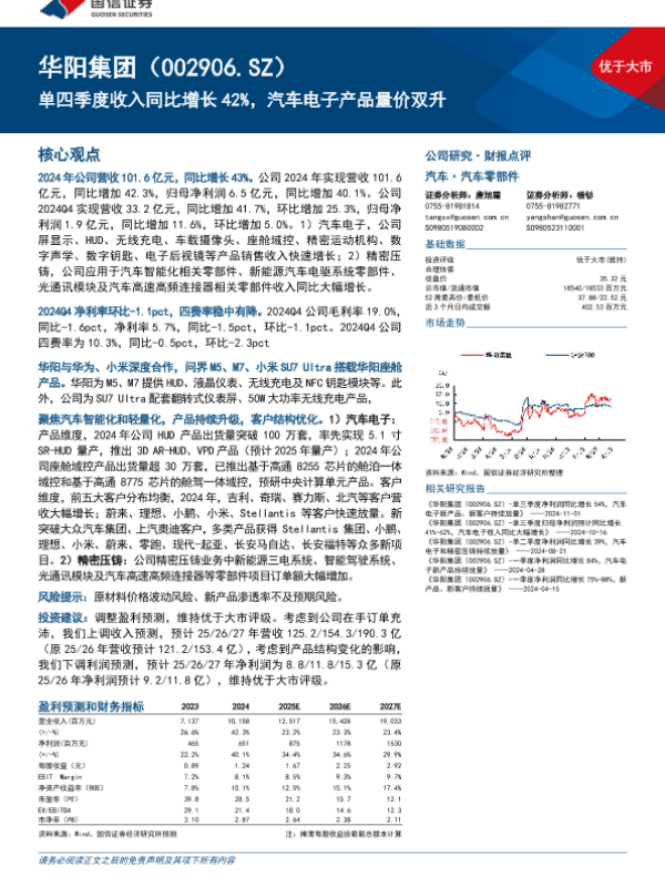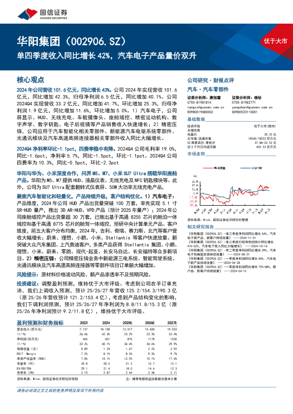 【国信证券】【20250401】华阳集团单四季度收入同比增长42%,汽车电子产品量价双升-18页