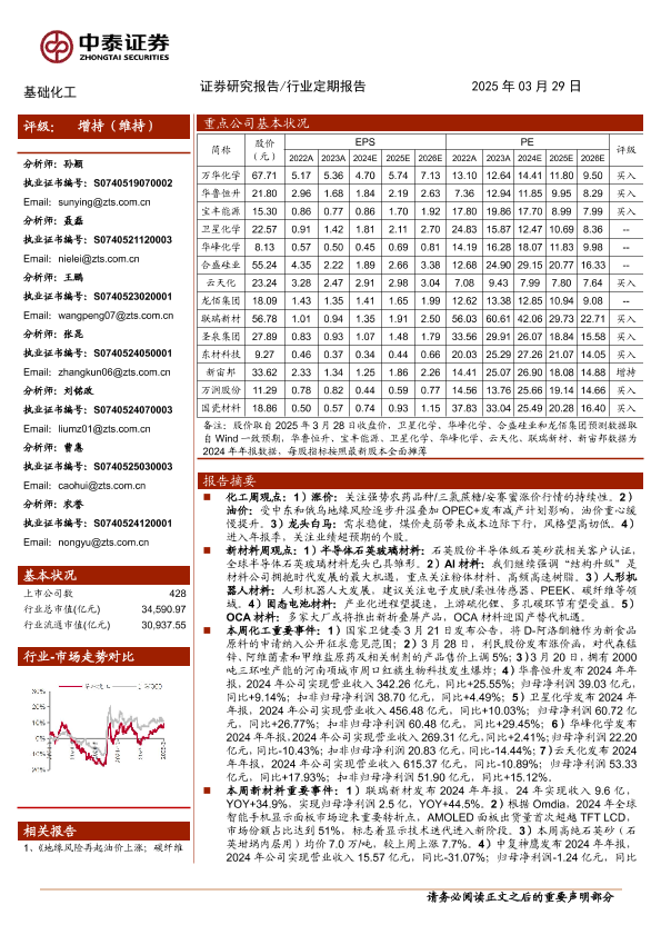 【中泰证券】【20250329】基础化工行业:关注涨价化工品种;半导体石英砂产业链已发生深刻变化-32页