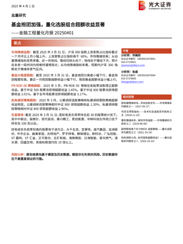 【光大证券】【20250401】金融工程量化月报:基金抱团加强,量化选股组合超额收益显著-12页