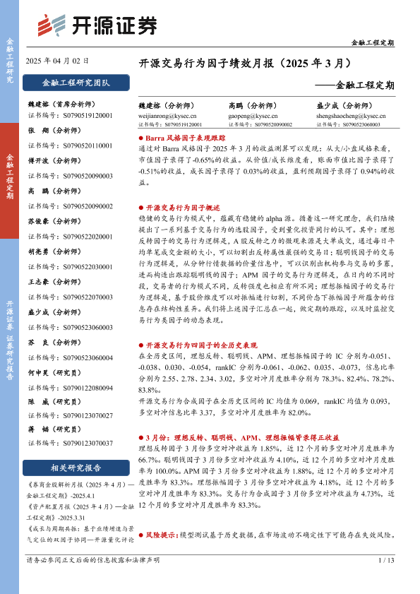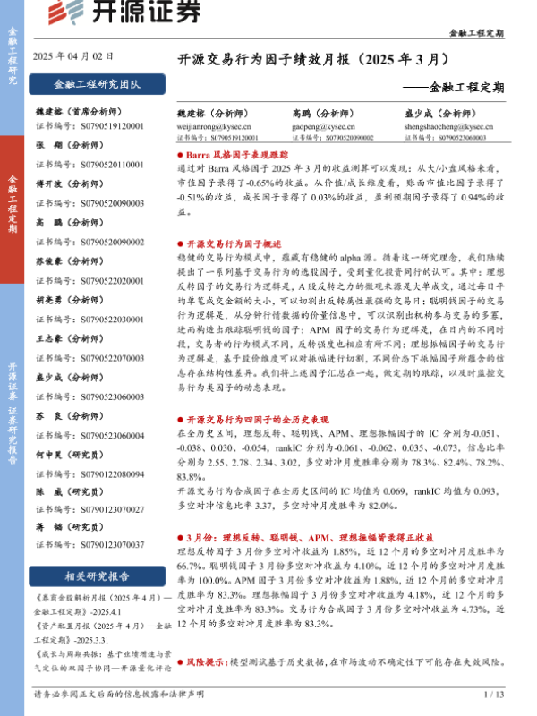 【开源证券】【202503】开源交易行为因子绩效月报-13页