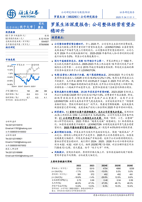 【海通证券】【20250401】罗莱生活(002293)深度报告:公司整体经营有望企稳回升-15页