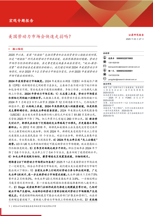 【西部证券】【20250327】美国劳动力市场会快速走弱吗?-16页