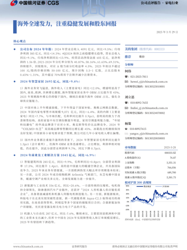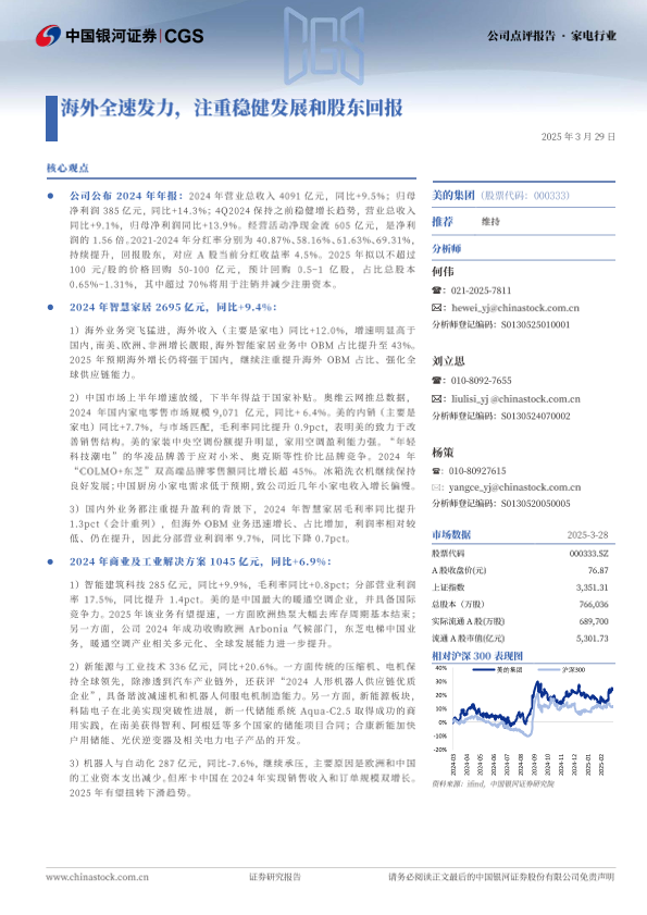 海外业务 稳健发展 美的集团 股东回报 财务预测