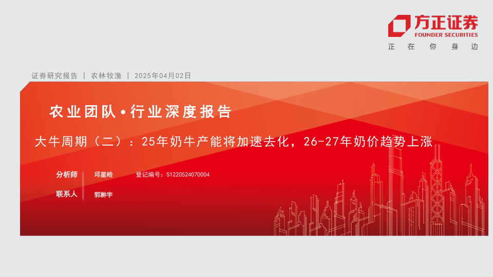 【方正证券】【20250402】大牛周期(二):25年奶牛产能将加速去化,26-27年奶价趋势上涨-28页