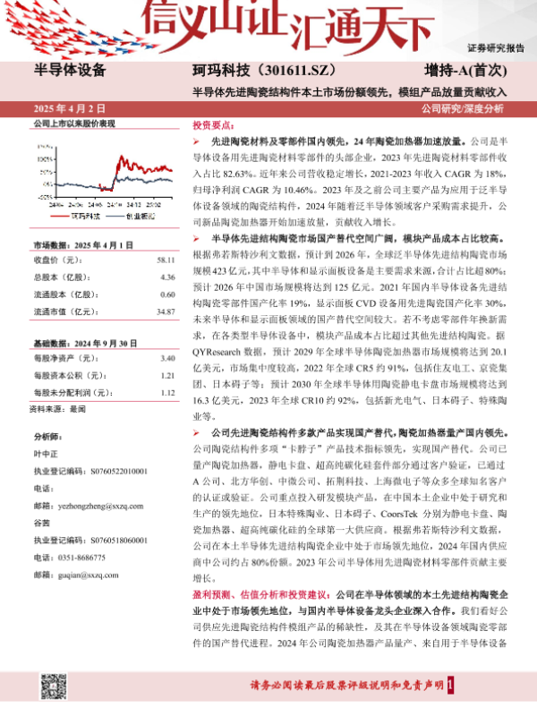 【山西证券】【20250402】珂玛科技(301611)半导体先进陶瓷结构件本土市场份额领先,模组产品放量贡献收入-44页