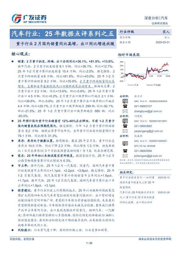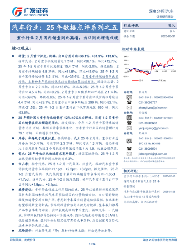 【广发证券】【20250331】汽车行业25年数据点评系列之五:重卡行业2月国内销量同比高增,出口同比增速放缓-24页