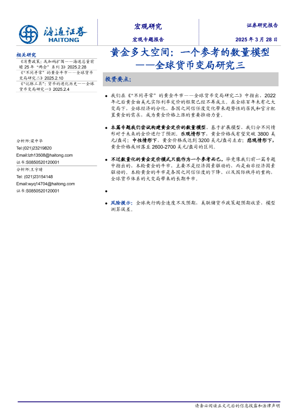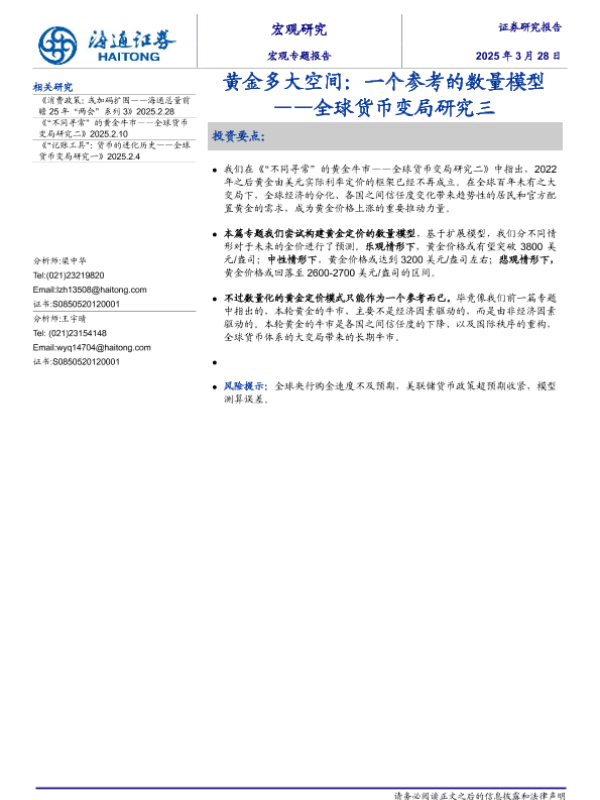【海通证券】【20250328】全球货币变局研究三:黄金多大空间,一个参考的数量模型-10页